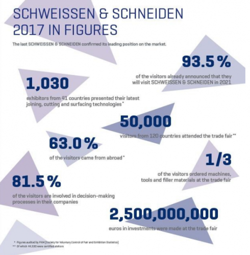 德國埃森焊接與切割展每四年舉辦一次,是由德國埃森展覽公司及德國焊接學會共同主辦,被稱為全球焊接切割行業的風向標、焊接行業的奧林匹克,它展示了一個充滿了創新和活力的焊接領域,可以反映當前國際焊接技術的現狀和發展趨勢。上一屆2017屆展會,由于埃森展館重新裝修,展會在埃森旁邊的城市杜塞爾多夫舉辦,本來周期為四年一屆的展會,期間由于全球新冠疫情的爆發延期至2023年,埃森焊接展也將回到他的故鄉埃森舉辦。屆時,展會將為焊接各相關領域的企業開辟專門展區,分別是焊接、切割、表面及熱處理、氣體供應、設備及安全服務。能夠使他們更集中的展示自己,有目標的開發新的客戶。